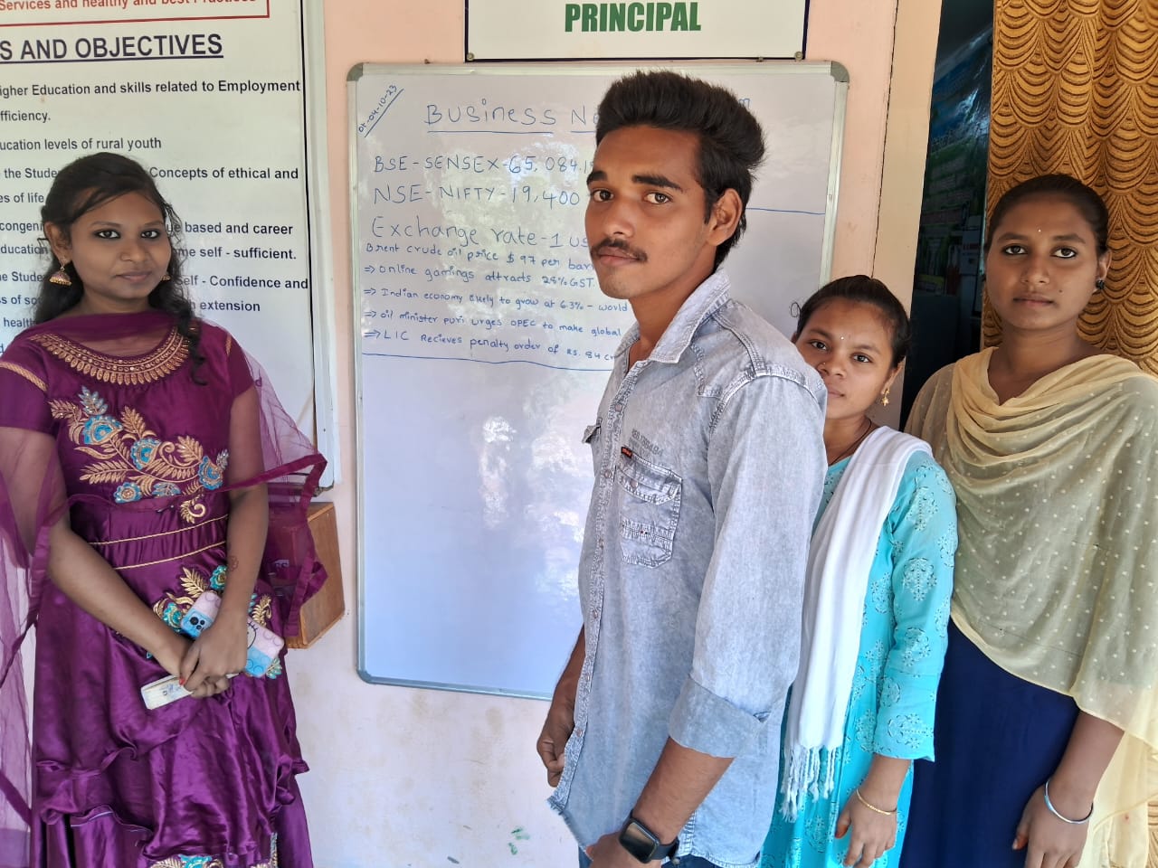 Business NewsB.Com students write evry day business news in college premise such as Indices of BSE Sensex, NSE Nifty,Gold Rate, Forex rates,Crude oil ,Business opointments ect.