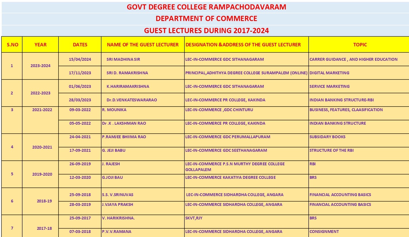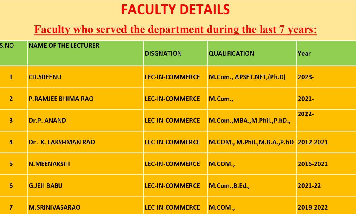 The department of commerce , which is the oldest and largest department of the college, was established in 1983. with intake of 80 students. In addition to the existing course, The department has been organizing quiz, seminars, Debates and group discussions among the students.