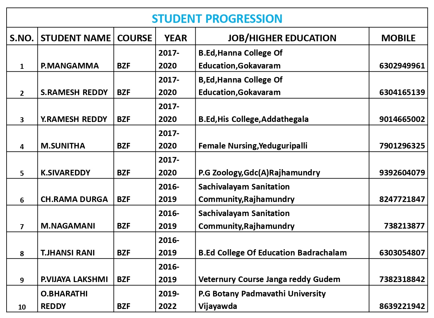 The College has a unique programme in B.Sc with Forestry as one of the Course in Andhrapradesh
